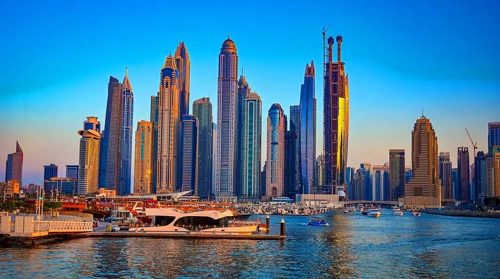 Dubai Marina - A vibrant waterfront community with numerous residential towers and hotels.